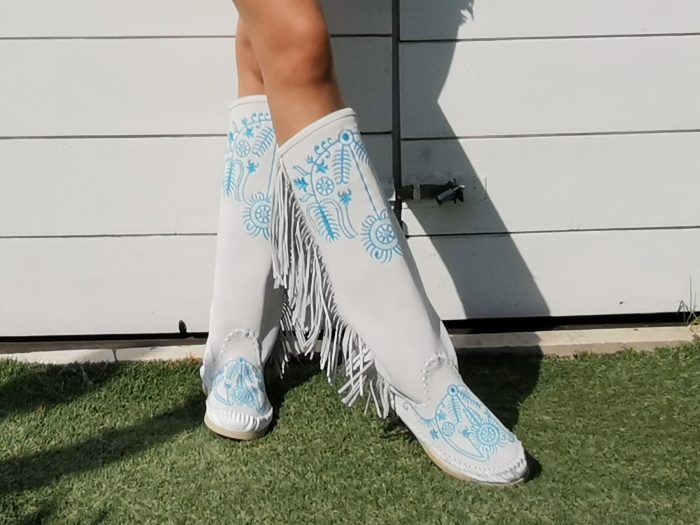 Se stai chiedendo come dare una svolta al tuo look con qualcosa di insolito e glam , ti propongo novissimi stivali DESIRE marcati FEBE, in pelle scamosciata nero con ricami luminosi e frange laterali pronte a vibrare ad ogni tuo passo—- Realizzato a mano, comodi da indossare, gradevoli al tatto, leggeri e flessibili donano un tocco glamour all’outfit senza apparire estremi o eccessivi con punta tonda. Al giorno d’oggi è molto raro trovare scarpe dove tutto è perfetto: pelle di qualità, ricami squisiti, suola resistente che ti servirà per più di una stagione e naturalmente meticoloso lavoro manuale. Gli stivali sono morbidi, estremamente comodi ed esclusivi in quanto prodotti in esemplari unici e solo su ordinazione.