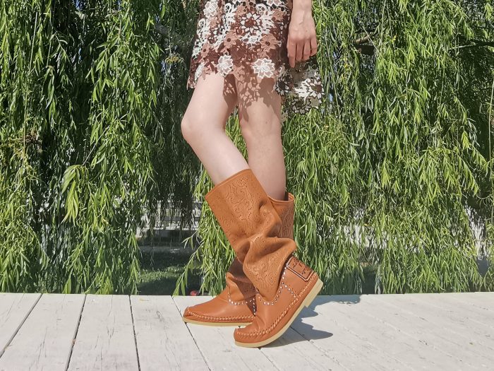 Vi presento stivali da donna , pensati per elevare il vostro guardaroba primavera-estate. Realizzati in pelle di prima qualità, questi stivali sono caratterizzati da una tomaia traforata al laser. Si abbinano perfettamente agli stili denim o agli abiti etnici fluidi. Gli stivali di forma comoda ti faranno dimenticare la pesantezza delle gambe o qualsiasi disagio. Leggeri, morbidi e femminile, sono pensati per essere portare morbidi e arricciati su polpacci. Stivali in vera pelle di vitello possano essere indossato a piedi nudi.
